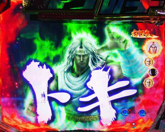 無想転生図柄停止から発展する高信頼度リーチ。ボタンPUSHで回想シーンが出現するほどチャンス(最大3回)となる。最終的にケンシロウがラオウに一撃を加えると大当り濃厚だ。