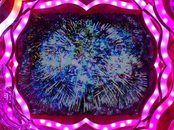 変動中に万華鏡が出現。ステップアップ形式で、最終的に大きな万華鏡が液晶いっぱいに広がれば大チャンスだ。