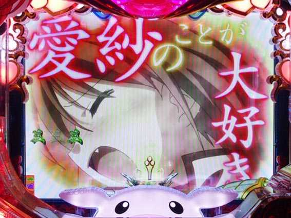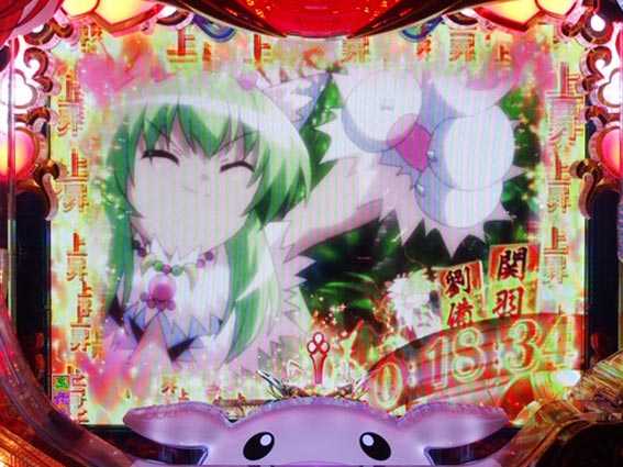 | トータル:3.5% 停止煽り図柄「発展」:3%未満 停止煽り図柄「テンパイ図柄」:9.4% 停止煽り図柄「真・恋姫」:34.4% 停止煽り図柄「激熱」:63.8% きゅいんパト警報予告なし:3.2% きゅいんパト警報あり:46.8% |
