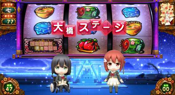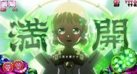 | 備考 | ★差枚数上乗せ特化ゾーン ★開始時に7揃いで満開、 BAR揃いで出陣へ発展 ★登場キャラにより 上乗せ性能が変化 ★上位バージョンの 「満開乱舞」も存在 |