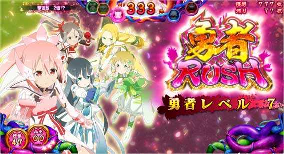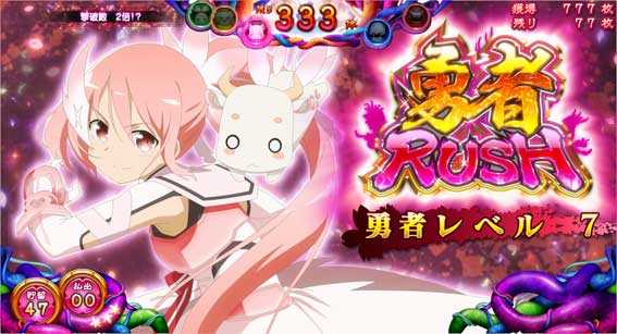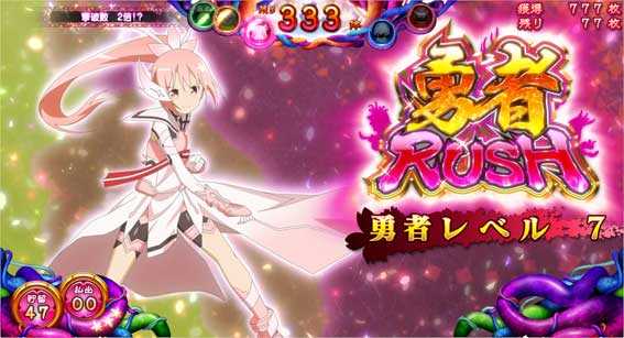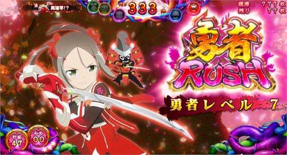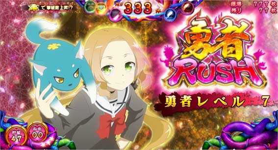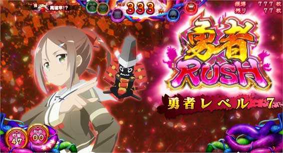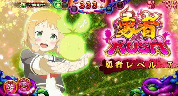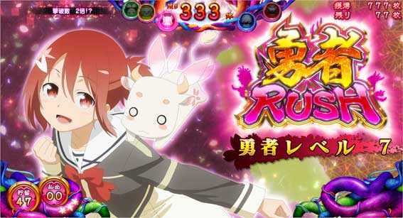 2014年に放映され、2017年10月には第2期の放送も予定されている人気アニメとのタイアップ機。出玉獲得のメイン契機は差枚数管理型ART「勇者RUSH」で、ART中は周期到達で差枚数上乗せのチャンスとなる。