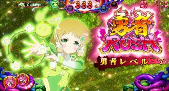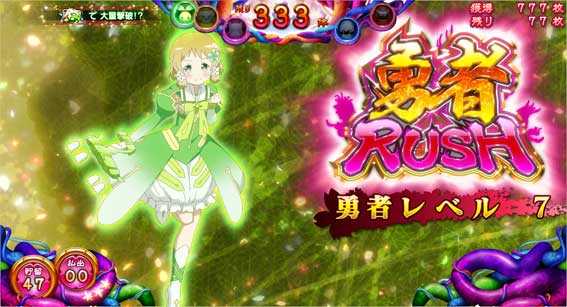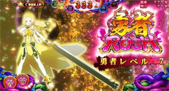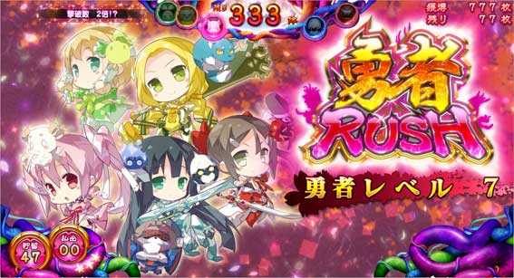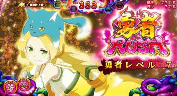 | 備考 | ★差枚数上乗せ特化ゾーン ★継続率管理型 ★勇者RUSH終了後は60Gの 引き戻しゾーンに突入 |