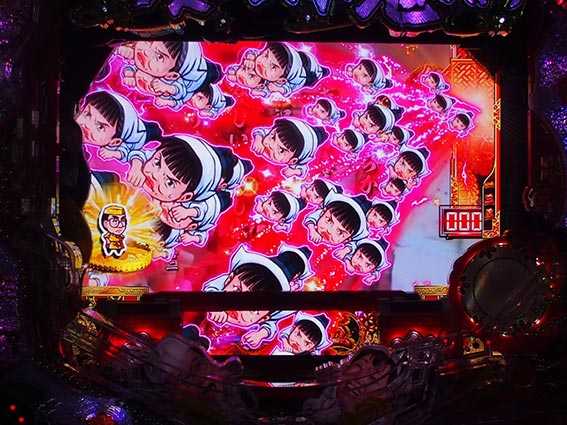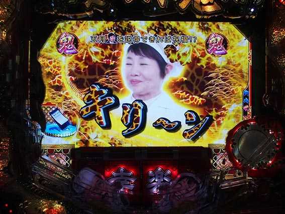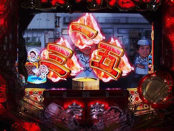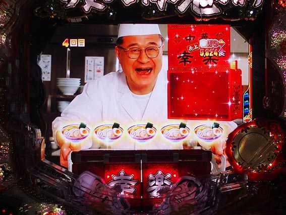 偶数図柄大当り時に発生する確変昇格演出。2つの岡持ちから好きな方を選択し、激怒般若役モノ完成で見事確変昇格、ラーメンが出てきた場合は通常大当り濃厚だ。ラウンドの最後で逆転昇格するパターンもあるぞ。