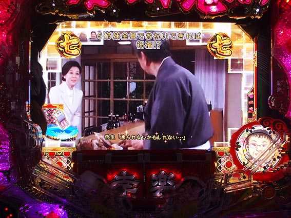 次回まで電サポが続く超幸楽モードは、姑・小姑とのバトルが勃発!? 色々な手を使って怒りを鎮めることが出来れば16R確変大当り(電チュー入賞時)、失敗で9R通常大当りのピンチとなる。ラウンド中の差し入れチャンスで昇格失敗すると時短100回転のチャンスタイムに移行するぞ。