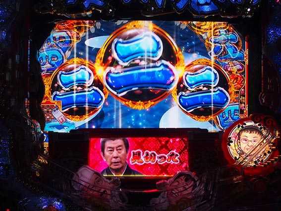 マルチラインで展開する本機最強リーチ。図柄煽り時の幸楽ビジョンに表示されるカットイン色に注目しよう。