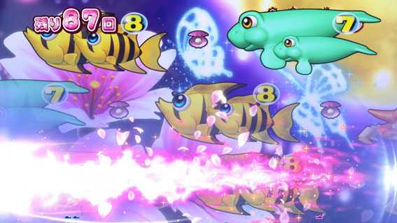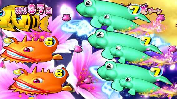 ラウンド中は、オーバー入賞した際に普段と異なる入賞音が発生すると、保留内での大当り連チャンが濃厚。また、大当り終了画面で金魚群が出現した場合も保留連濃厚だ。