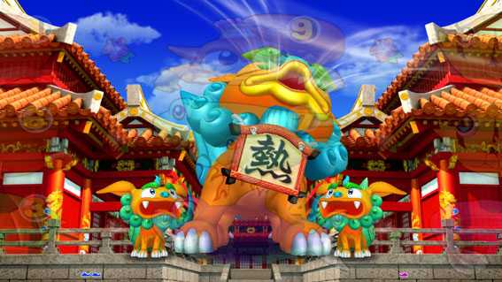 ミニキャラステップアップ予告をはじめとした多彩な演出が展開。沖縄モードでは、スーパーリーチ発展後にボタンを押して泡と魚群のどちらが出現するかがポイントとなる。