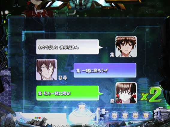 | 王の刻印役物 | 色が赤の時に「囚われたいのり」or 「ルーカサイト攻略作戦」以外に 発展すると信頼度アップ |