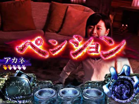 連続演出で呪いの手役物の片手が落ちるとCZ、両手落下で貞子BONUS!?