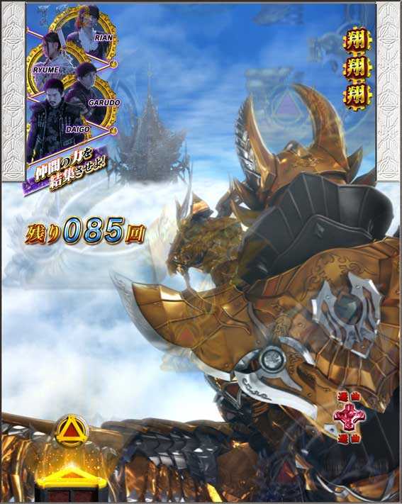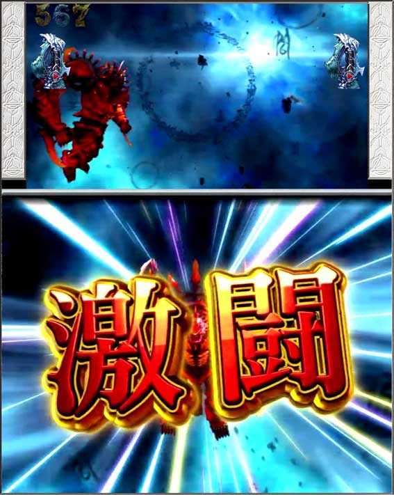 初回銀図柄揃い中に発生するバトル演出。敵の攻撃をしのぐことができれば4R確変&ST突入、負けてしまうと4R通常&時短突入となる。ただし、敗北してもザルバが登場して逆転のST突入となるパターンも存在する。