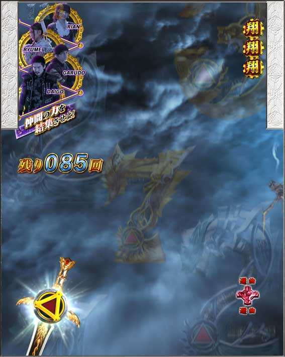 銀図柄揃いで発生。基本的には16Rの通常大当りだが、ラウンド中に心音(早さに秘密あり!?)が発生してP.F.O.G.翔完成となる確変昇格演出が発生することもあるぞ。また、心音演出に失敗してもザルバが登場して逆転昇格パターンも存在する。