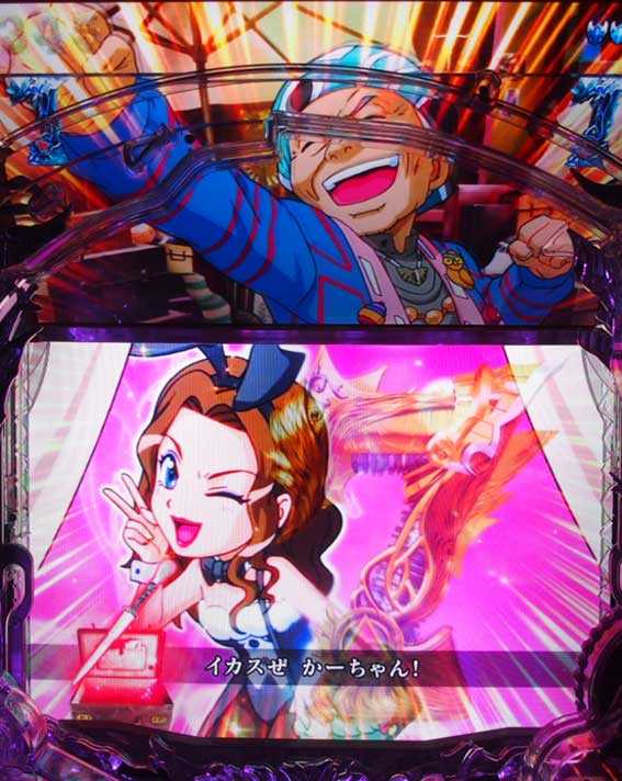 | タイトルの色 | ■青・・・大当り濃厚 ■緑(ロゴ駆動なし)・・・大当り濃厚 ■緑(ロゴ駆動あり)・・・大当り濃厚 ■赤イルミ(ロゴ駆動なし)・・・66.05% ■赤イルミ(ロゴ駆動あり)・・・大当り濃厚 ■赤イルミ昇格・・・大当り濃厚 ■虹・・・大当り濃厚 |