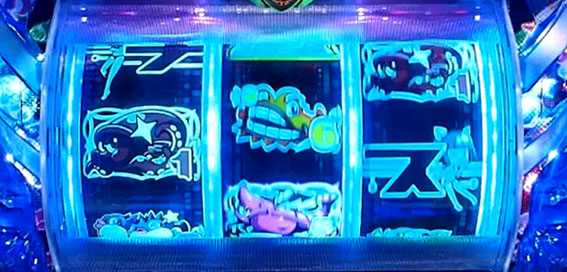 リールが青く染まる先読みゾーン。同時に魚群導光板が白点滅すれば強パターンとなり期待大!
