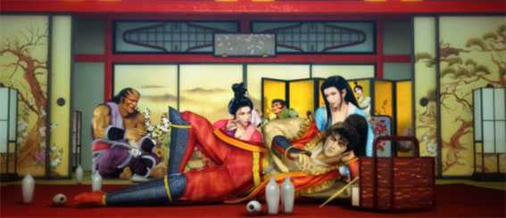 背景の色は獲得ポイント数に対応しており、赤背景まで移行すればチャンス。最終ゲームでは、獲得ポイント数と同じ秒数だけ大朱槍役物を押し込む演出が発生し、残り秒数が0になるまでに天槍役物が落下すればART当選となる。