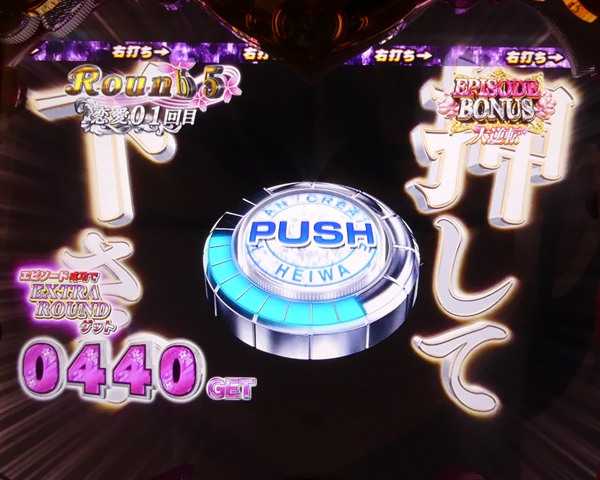 EPISODE BONUS中はラウンド中にボタンPUSH演出が発生。ここで成功すれば16R大当りとなる。失敗すると8R大当りとなるが、その場合でも大当り終了後は必ずSUPER DRAMATIC DAYSが継続するぞ!