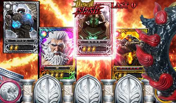 | 備考 | ★ゲーム数上乗せ&セット数上乗せ型ART ★セット継続抽選あり ★レア役でカード書き換えや セット数上乗せなどを抽選 ★神RUSHと悪魔RUSHのすべての 上乗せ特化ゾーンへ突入する可能性あり ★所持カードの種類で残りゲーム数を示唆 |