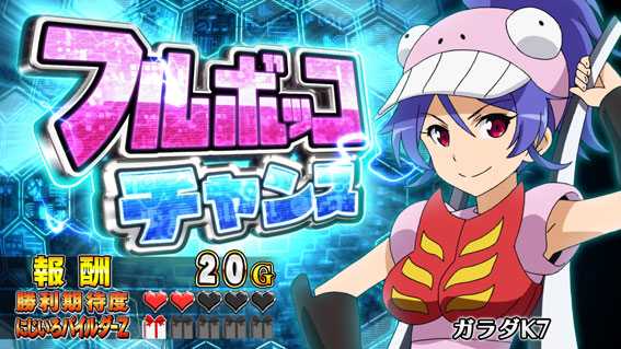 | 備考 | ★上位のART ★突入時に10Gを上乗せ ★CT成立時のバトル勝率が100%になる ★バトル勝利時のにじいろパイルダーZ 突入率が50%にアップ ★レア役はフルボロッ娘RUSHの ゲーム数上乗せを抽選 |