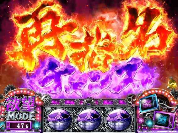| 備考 | ★ゲーム数解除でのART当選が 期待できる前兆ステージ ★欲望の色が変わるほどチャンス ★連続演出でARTの当否を告知 |