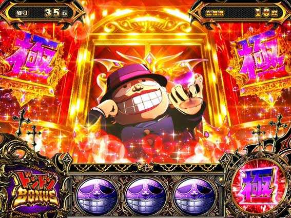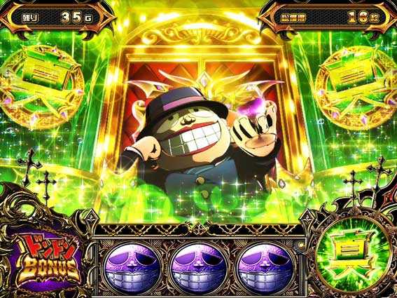 同名アニメをモチーフにした三洋の人気シリーズ第3弾。ボーナス非搭載の、ARTのみで出玉を増やすタイプだ。ART「ドンドンBONUS」では、赤7を揃えて喪黒福造の「ドーン!」が炸裂するたびにセット数を上乗せ。上乗せ性能が大幅アップする「真・ドンドンBONUS」や「極・ドンドンBONUS」も搭載されているぞ。
