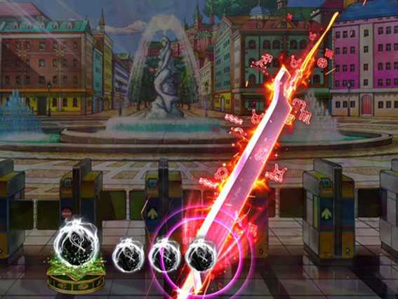 明日菜が剣で画面を斬るとチャンス!