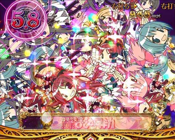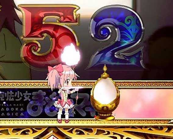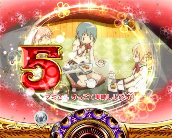 魔法少女たちがそれぞれ単独で大当りを狙うスーパーリーチ。やはり直当りの可能性は低いので、ハズレ後のグリーフシード出現からのVS魔女バトルリーチ発展、またはキュゥべえギミック作動からのストーリーリーチ発展を祈ろう。