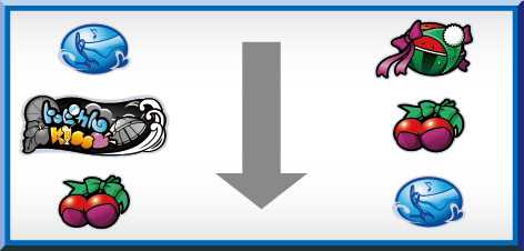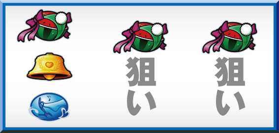 上下にキャラ出現時は、両キャラ対応の小役を否定すればボーナス濃厚。下パネに出現したキャラ対応の小役が成立したり、上下ともに同キャラだとチャンスとなる。