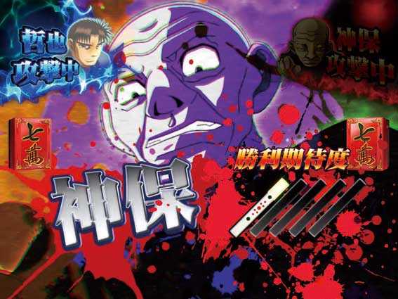 電サポありの確変or時短モード。初回突入時や16R確変大当り後の突入なら確変状態濃厚だ。液晶ではテンパイ図柄が重要で、数字図柄がテンパイすれば哲也の攻め(負けなし)が発生し、敵先制図柄がテンパイすると敵が攻めてくる。最終的に哲也が勝てば16R確変、負けるとボタン連打演出を経て玄人BATTLE継続or集中モードに突入する。なお、一度勝利した玄人が再度敵として登場すると、その時点で哲也の勝利が濃厚となるぞ!