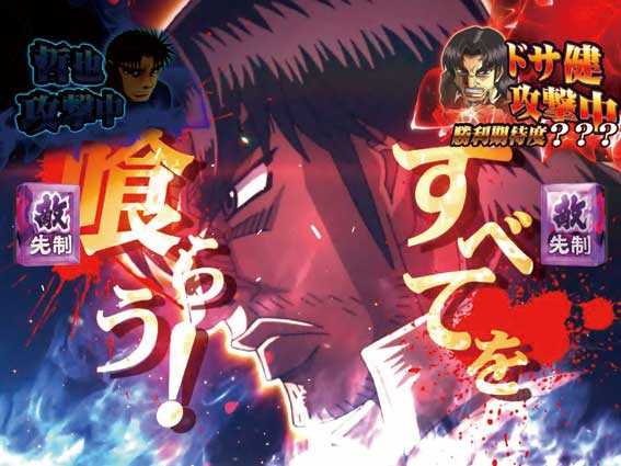 哲也VSドサ健の激アツバトルリーチ。ボタンPUSHで哲也がツモれば大当り!