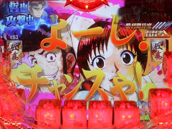 哲也が勝利すれば大当り。対戦相手が菊川&海渡なら大チャンスだ。