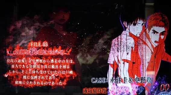 2017年9月に実写映画公開予定の人気漫画作品「亜人」のタイアップマシンが登場! 本機のART「BIG WEDNESDAY」はARTの蘇生が特徴となっており、ART終了時に報酬カウンタがあれば亜人研究所へ突入し、必ずゲーム数を上乗せして復帰する。その際に報酬カウンタの昇格抽選を行っており、昇格するほど上乗せ特化ゾーンなどの報酬がプラスされやすくなるぞ。