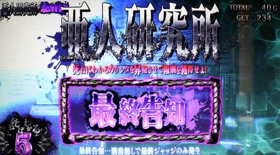 | 主な突入契機 | ★亜人狩り成功 ★ストーリー成功 ★亜人BONUS中の亜人図柄揃い |