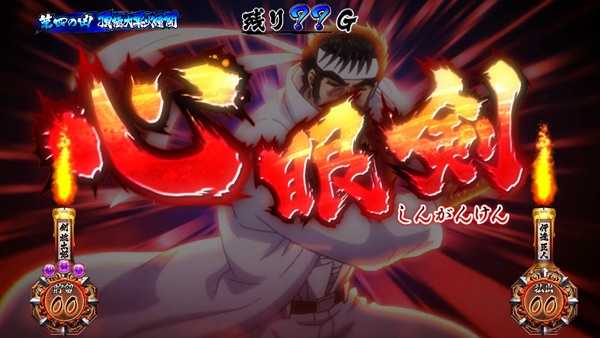 | 備考 | ★奥義が当たればART突入 ★押し順ベル入賞orレア役成立で奥義発動 ★12G目までは押し順ベル成立時に2択ナビが発生 ★13G目以降は押し順ベル成立時に完全ナビが発生 ★13G目以降は敵の奥義を喰らうとCZ終了 ★奥義レベルが高いほど奥義が当たる期待度アップ ★ART突入時の一部で男塾チャンスが発生 |