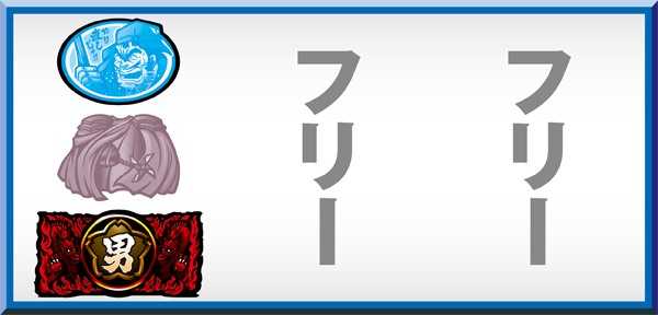 | 備考 | ★消化中は毎ゲームART抽選 ★チャンスベル揃いでART期待度アップ ★オーラの色でART期待度を示唆 ★巌流島決戦で勝利すればART ★青7揃いでのART一発当選もアリ ★ART中の場合は青7揃いで根性上乗せ |