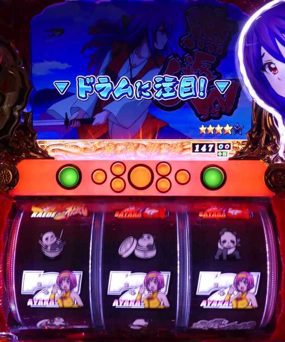 液晶上で風上三姉妹の秘技が発動し、ドラムアクションが展開される。特に「燕返しWリーチ」は期待大だ。