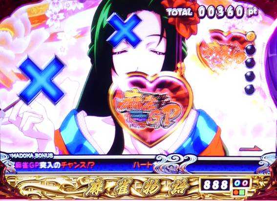 後告知型の演出で、ラウンド中にハートを獲得するほどチャンス。最後のルーレットでハートが止まれば麻雀GP突入!?