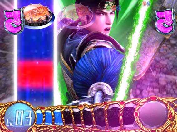 大当りに絡みやすい高信頼度リーチ。味方武将の3人が宿敵の孫悟空や平清盛を撃破できれば大当りとなる。チャンスアップの出現にも注目したい。
