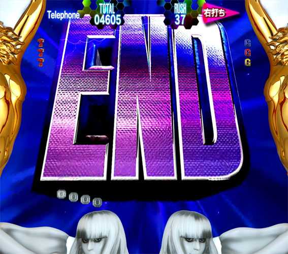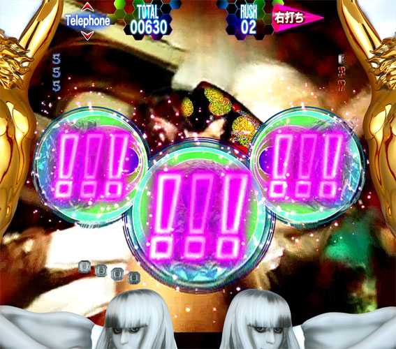 | 「Telephone」 | ■トータル・・・14% ■通常タイトル・・・8% ■赤タイトル・・・23% ■フルーツ柄タイトル・・・89% ■GAGA背景(強)・・・49% ■モチーフ落下&役物赤・・・23% ■サブリミナルチャンスアップ&役物赤 ・・・47% ■GAGA文字赤・・・9% ■GAGA文字金・・・93% ■チラGAGA(弱)・・・89% ■チラGAGA(強)・・・大当り濃厚 ■HYPER GAGA ZONE発生・・・75% |