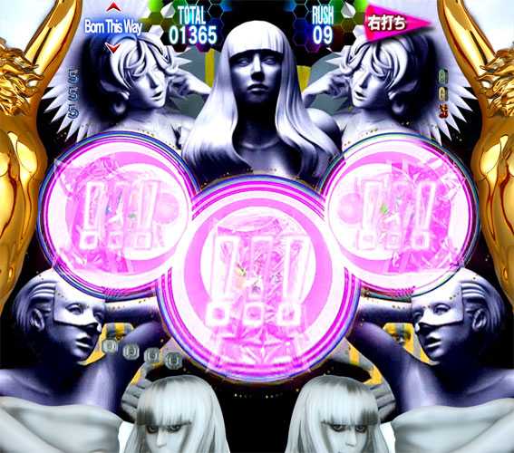 世界を股にかける超有名シンガーとパチンコの夢のコラボが実現。REMIXを含めた全16曲を、リーチや大当り、GAGA RUSH中などに聴くことができるぞ。また、小当りRUSHを搭載しており、すべての確変大当り後に小当りRUSHが付くため気軽に小当りによる出玉増加の爽快感を楽しむことができる。