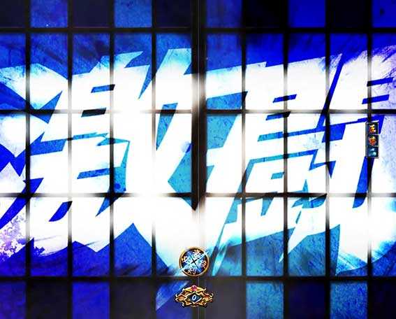 特殊な障子が閉まる演出。「激闘」なら激闘編のリーチ、「突」なら斬RUSH突入!?