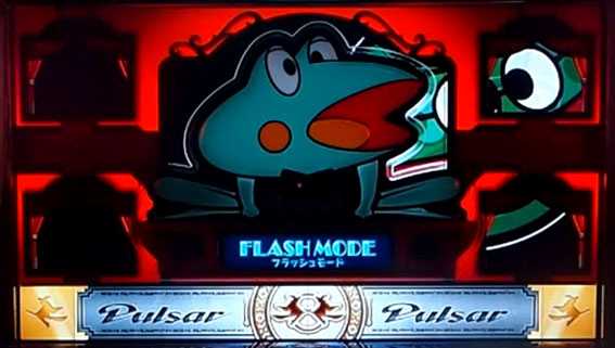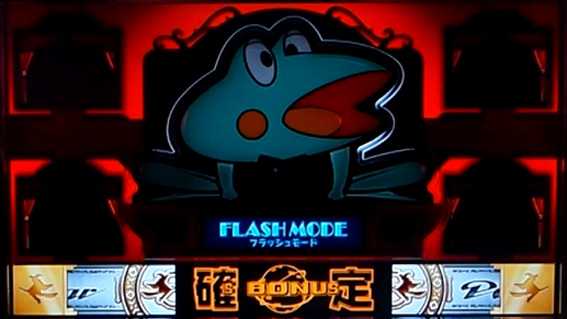 全リール停止後にカエルのネクタイにタッチし、スペシャルフラッシュ(上記画像)が発生すればボーナス濃厚だ!