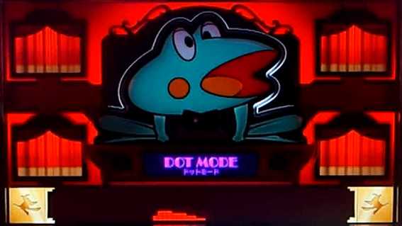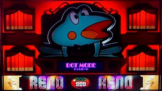 『ニューパル』ならではの出目演出を楽しめる。リーチ目を熟知していなくても、怪しい出目停止時は上部液晶パネルのカエルのネクタイにタッチすれば、ボーナスに当選しているか否かをチェックできるぞ。なお、モード変更方法については、待機中にモードボタンを押すだけで切り替えられる。