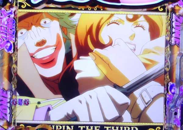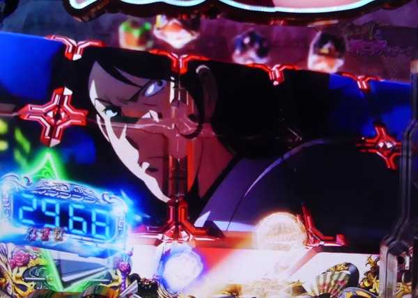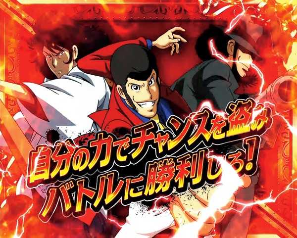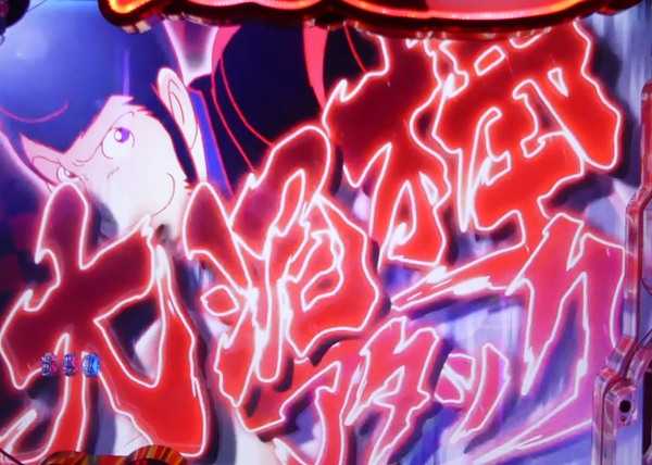 愛の大逃走劇リーチでは、ルパン&不二子が銭形から逃げ切れば大当り。終盤のカットインの種類に注目だ。