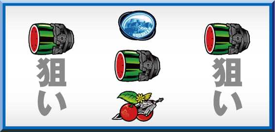| 左リール上段~中段に 「BAR・チェリー・BAR」の下BARを狙う! |