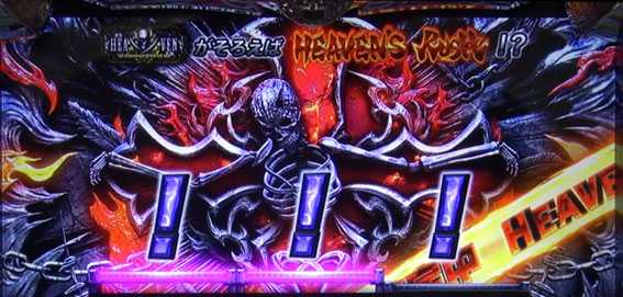 上乗せ特化ゾーン「ヘヴンズラッシュ」(HR)を高確率でストックする特殊RB。カットイン発生時にBARが揃えばHRを上乗せ、さらに13枚役が5回入賞するまでに「!」ナビが6回発生するとスーパーヘヴンズラッシュ突入が濃厚となる。