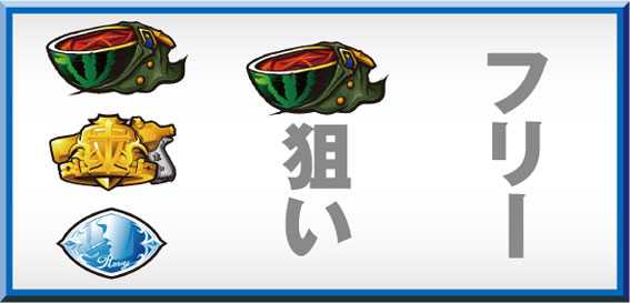 ★演出発生時は逆押しで右・中リールをフリー打ちし、左リールに「BAR・BAR・スイカ」を狙う。(フリー打ちでも枚数的な損はなし)