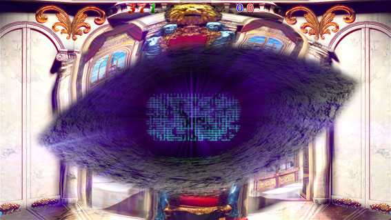 図柄が揃った直後、画面奥に吸い込まれた図柄が再度アップになる際に3図柄揃いや7図柄揃いへ昇格する可能性あり。