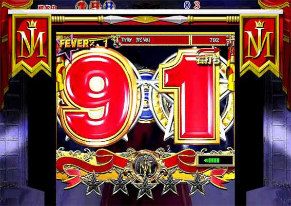 ■赤文字・・・2% ■MJロゴ結果「ゼログラビティー」・・・3% ■MJロゴ結果「スリラー」・・・30% ■MJロゴ結果「ビクトリーポーズ」・・・大当り濃厚 |