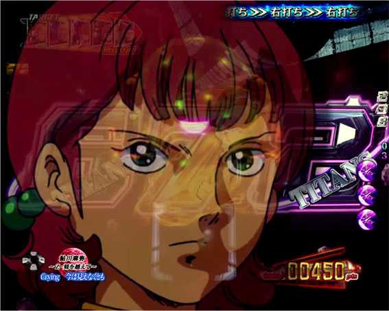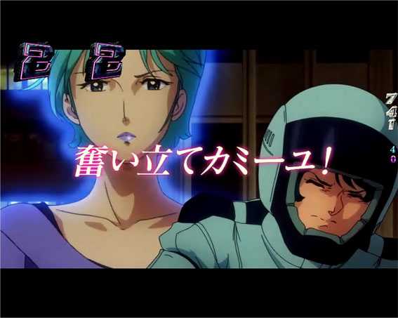 ノーマルリーチやSPリーチハズレ後のハマーン登場煽り成功で発展。クワトロがミネバと再会できれば大当りだ。