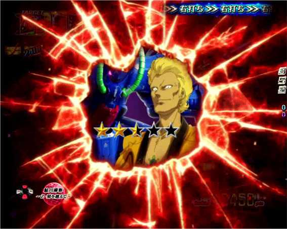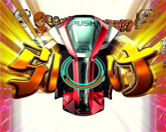 通常時に図柄が揃うと、大当りの前に専用ムービーが発生。偶数図柄が揃っていた場合は画面左上で昇格チャンスが発生し、ボタン連打で奇数図柄に変われば確変昇格となる。ボタン連打時の図柄エフェクトが赤だと昇格期待度がアップするぞ。