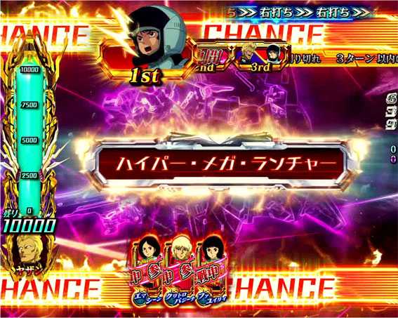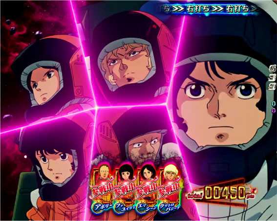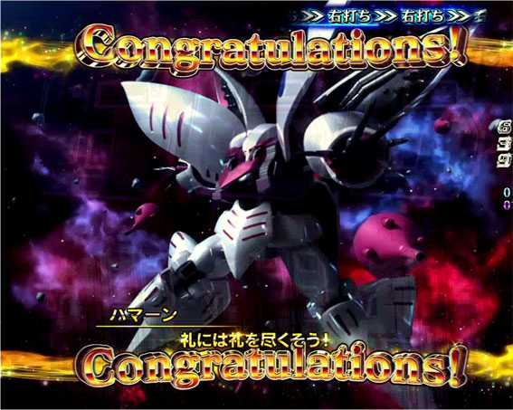 リーチ後の液晶暗転から発展する激アツリーチ。原作のラスボスであるシロッコに勝利できれば大当りとなる。
